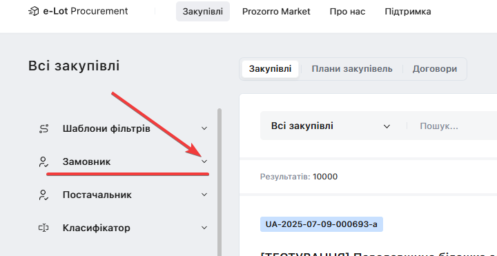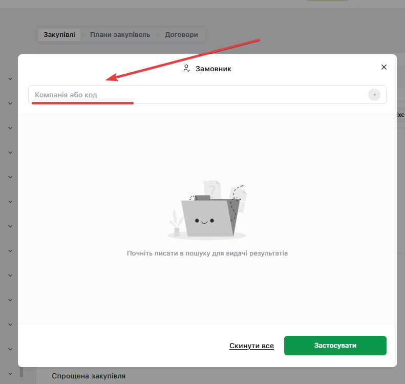 Оберіть «Замовника» зі списку, натиснувши кнопку «Застосувати»: