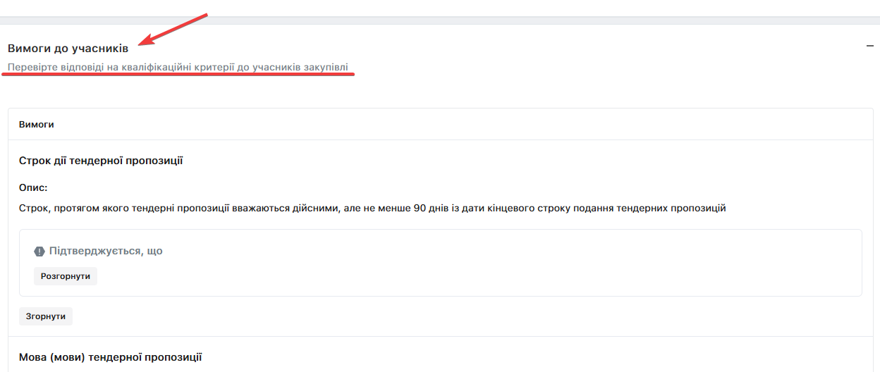 Перевірте і дайте відповіді на вимоги, щодо кваліфікації учасників: