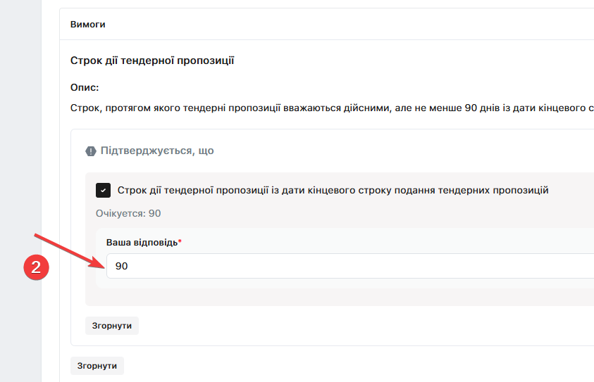 За аналогією із кроком 13, розкрийте кожну вимогу окремо, натиснувши кнопку «Розгорнути», після чого надайте відповідь: