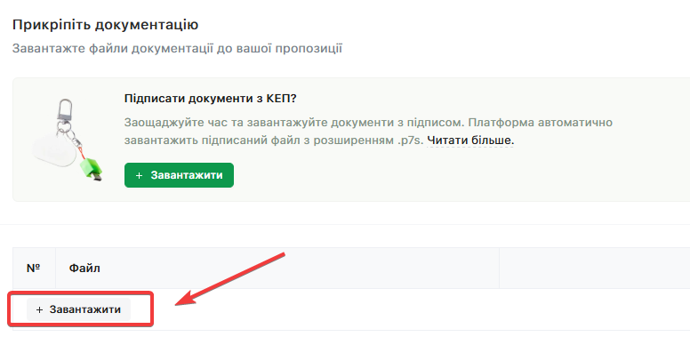 Додайте документи у відповідному полі, натиснувши кнопку «Завантажити»: