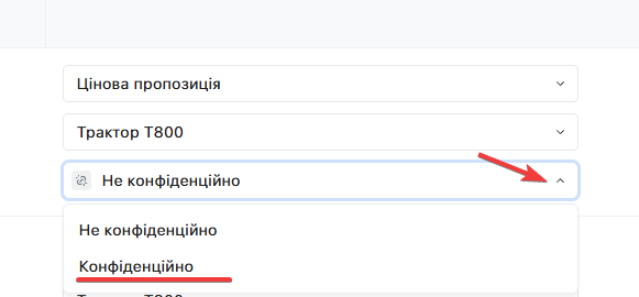 Завантажений документ може містити конфіденційну інформацію, для зміни статусу конфіденційності оберіть відповідний пункт у спадному меню: