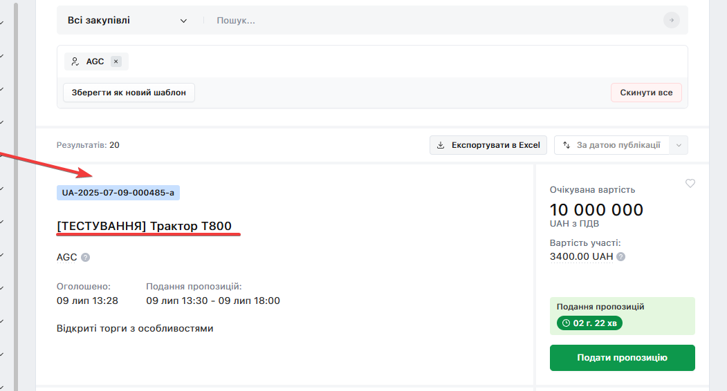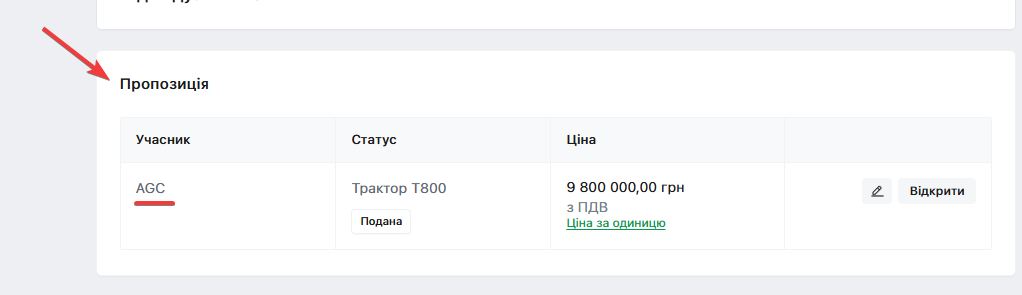 💡 Пропозиція буде сформована у відповідному списку внизу сторінки закупівлі: