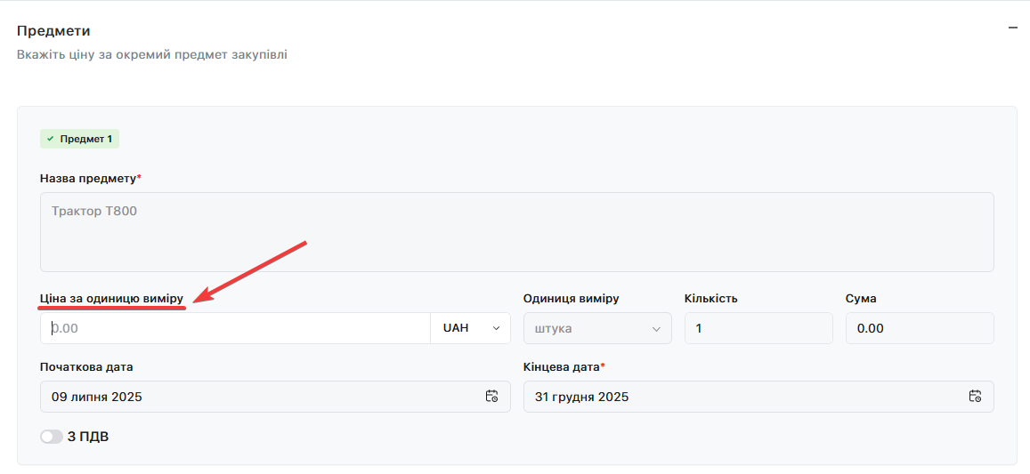 Введіть цінову пропозицію у відповідне поле: