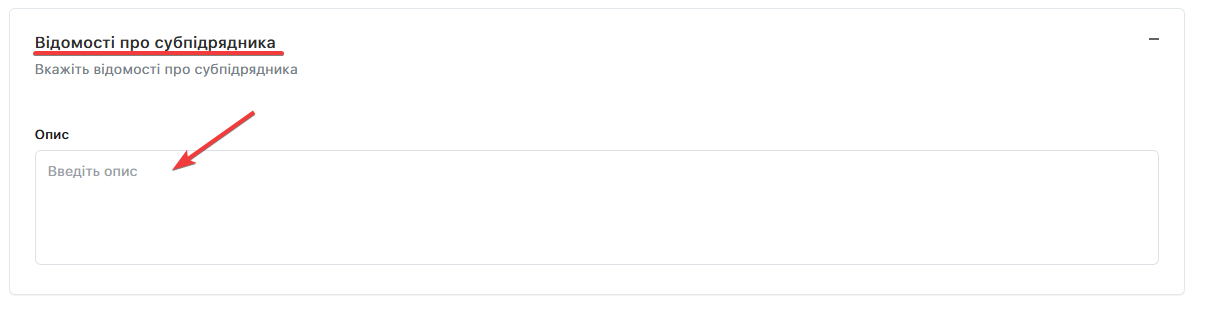 За потреби вкажіть «Відомості про субпідрядника» у відповідному полі: