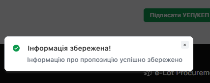 В разі успішного накладання «УЕП/КЕП», система повідомить про це у вигляді інформаційного повідомлення зліва внизу: