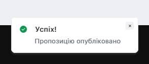 Після списання коштів з балансового рахунку і успішної подачі пропозиції, з'явиться інформаційне віконце зліва внизу: