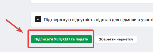 Після перевірки всіх ведених даних натисніть на кнопку «Підписати УЕП/КЕП» та подати.
