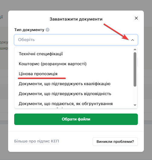 Оберіть «Тип документу» в спадному меню: