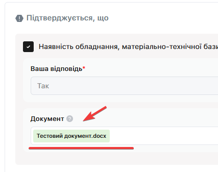 Кожний пункт має опис та/або очікувану відповідь на вимогу, або можливість завантажити документ відповідності вимогам: