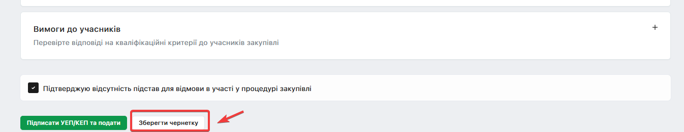 Після заповнення всіх необхідних електронних полів, натисніть на кнопку Зберегти чернетку: