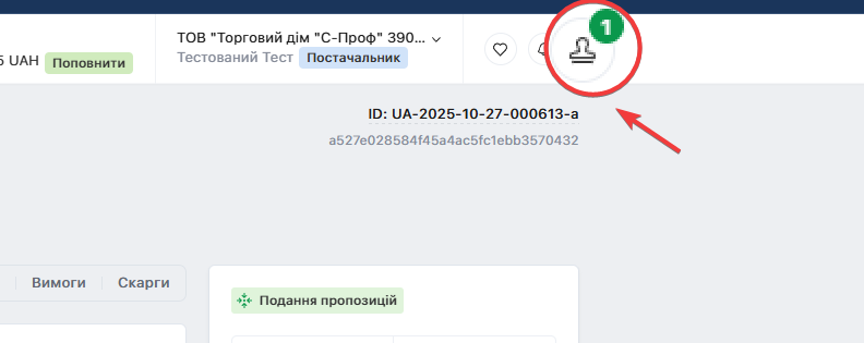 Зверніть увагу! Ваша Пропозиція була додана в спеціальний розділ Очікують на підпис праворуч зверху сторінки