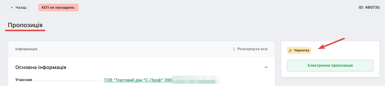 Автоматично відкриється сторінка із Пропозицією, де її можна детально розглянути та перевірити: