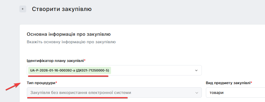Ключова інформація про Закупівлю, а також посилання на План закупівлі - підтягуються системою автоматично: