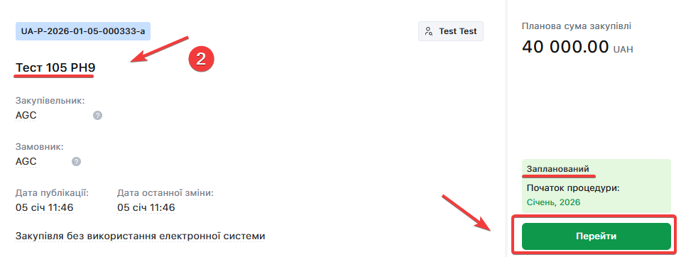Знайдіть План закупівлі у відповідному розділі, та натисніть кнопку Перейти: