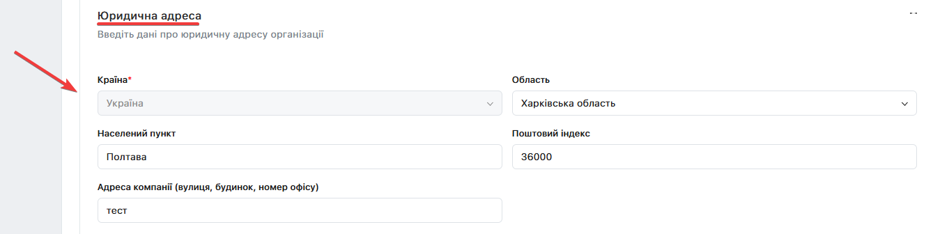 Перевірте Юридичну адресу Переможця (за замовчуванням - вона підтягується автоматично із реєстрів), за потреби відкоригуйте її у відповідному полі: