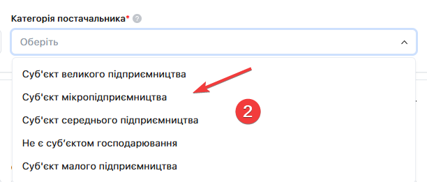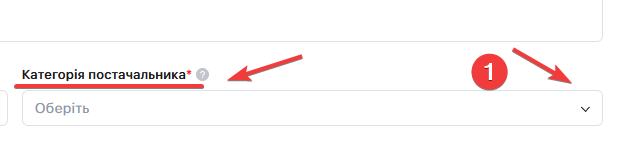 Оберіть Категорію постачальника у відповідному полі, натиснувши на спадне меню: