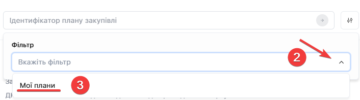 Натисніть кнопку (2), щоб розкрити спадне меню, після чого оберіть фільтр Мої плани:
