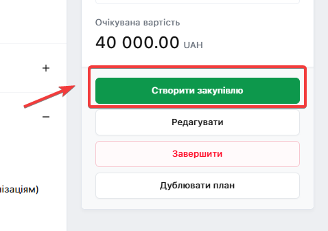 Перейдіть на сторінку з Планом закупівлі та натисніть Створити закупівлю: