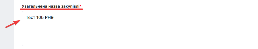 За замовчуванням - Узагальнена назва закупівлі підтягується із Плану закупівлі, за потреби її можна відкоригувати: