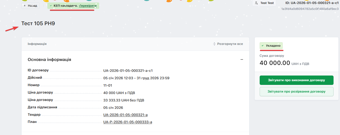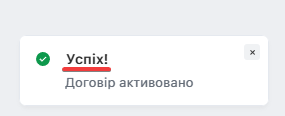 В разі успішного підпису договору - система повідомить про це інформаційним повідомленням: