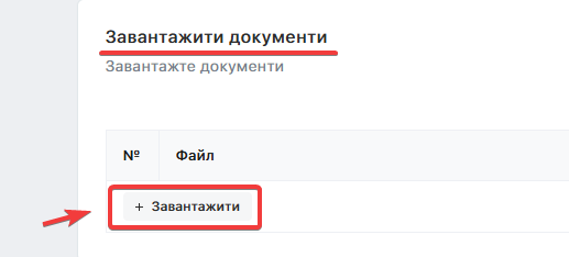 За потреби завантажте документи у відповідному розділі натиснувши на кнопку Завантажити:
