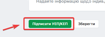 Перевірте ключову інформацію і прогорніть сторінку вниз, після чого натисніть кнопку Підписати УЕП/КЕП (деталі про накладання підпису за посиланням нижче):