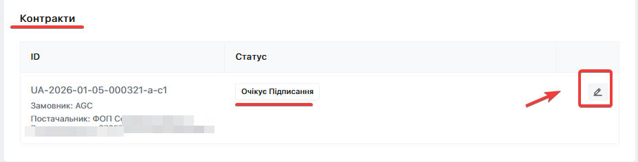 Прогорніть сторінку до розділу Контракти та натисніть на значок Редагувати: