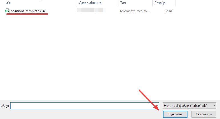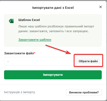 Оберіть заповнений шаблон натиснувши кнопку Обрати файл:
