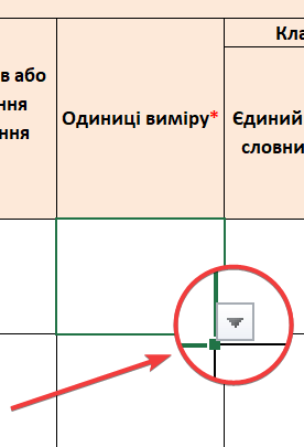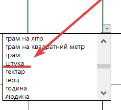 Оберіть Одиницю виміру натиснувши на кнопку, щоб з'явився спадний список: