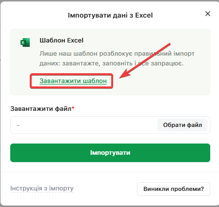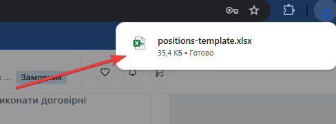 Завантажте файл-шаблон Excel натиснувши кнопку Завантажити шаблон: