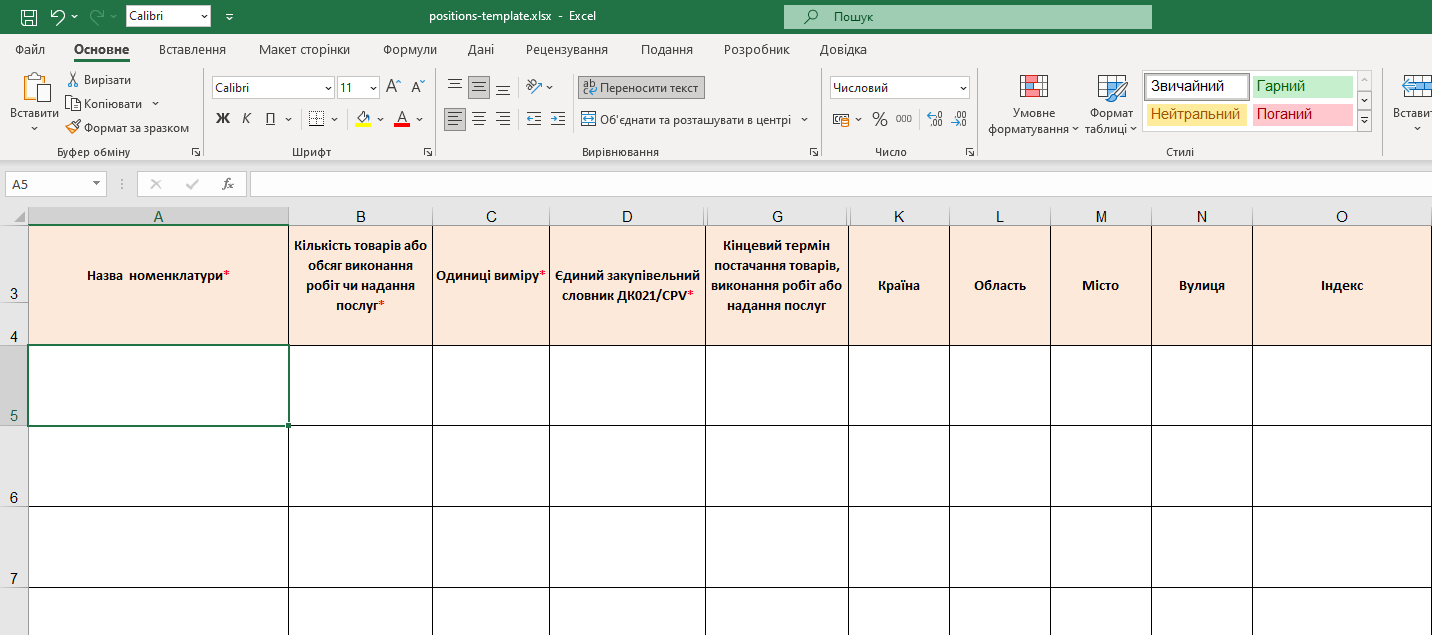 Шаблон розроблений для економії часу і можливості введення 2 і більше Предметів закупівлі із різними параметрами, та особливостями