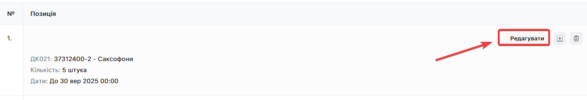 За потреби можна відредагувати кожний предмет закупівлі окремо, натиснувши кнопку Редагувати: