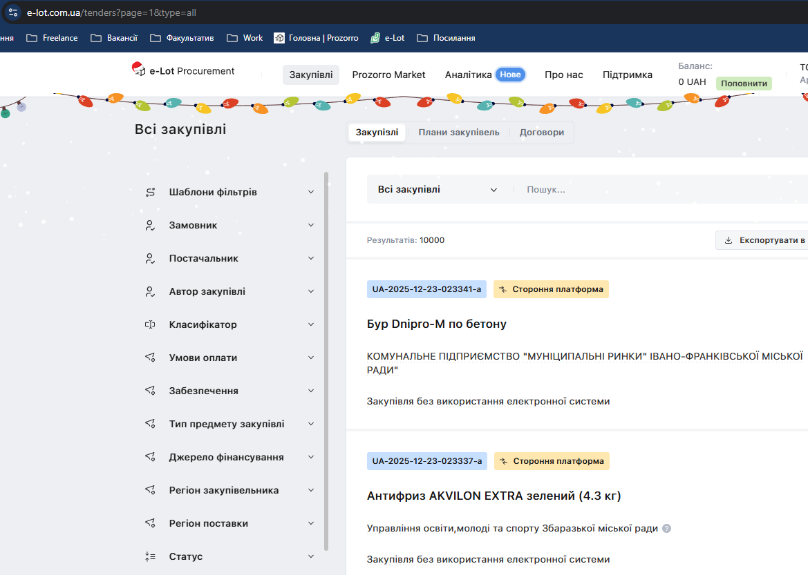 Для зручності можна одразу натискати на номер закупівлі, щоб відкрити сторінку закупівлі в браузері: