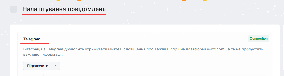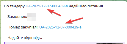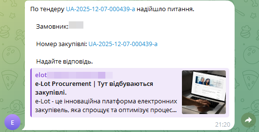 Налаштування повідомлень у Telegram - зручний інструмент для оповіщення користувачів про перебіг процедур у закупівлі, в режимі онлайн.