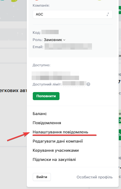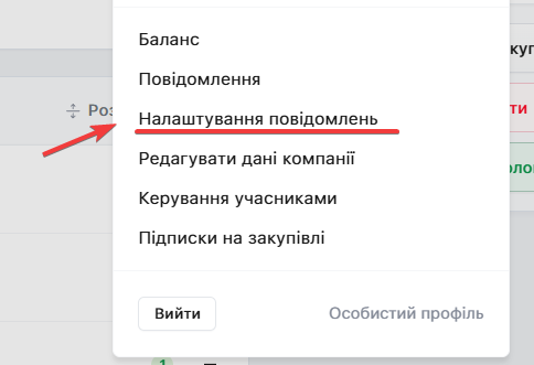 У модальному вікні оберіть пункт Налаштування повідомлень:
