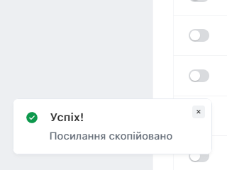Система проінформує про успішне копіювання посилання через інформаційне повідомлення: