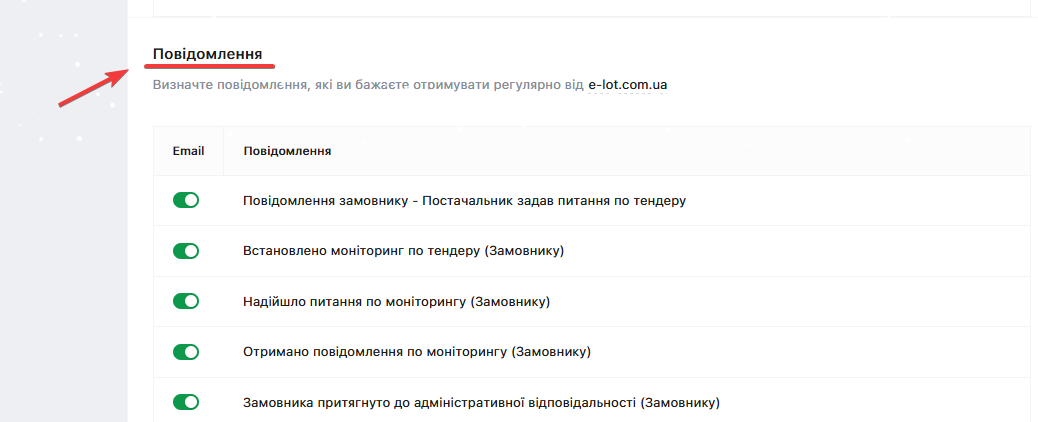 Перейдіть до розділу Налаштування повідомлень: