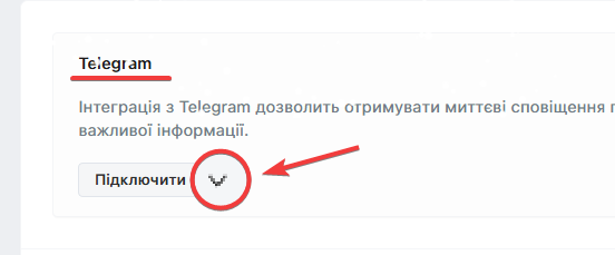 В розділі Telegram натисніть на значок спадного меню: